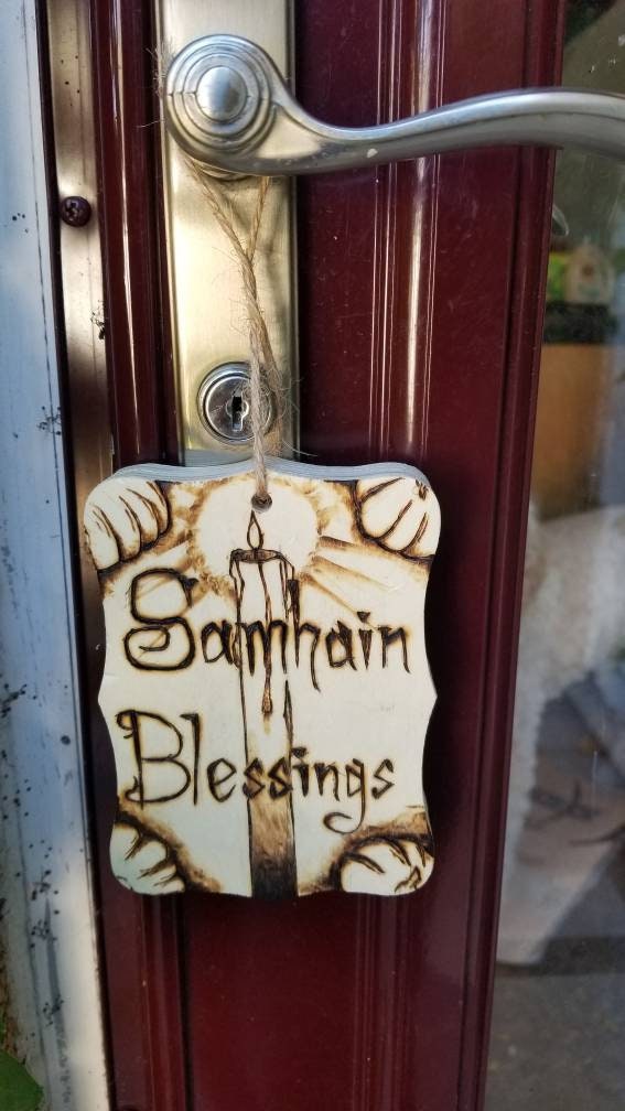 Samhain Blessings Wood Burnt Plaque